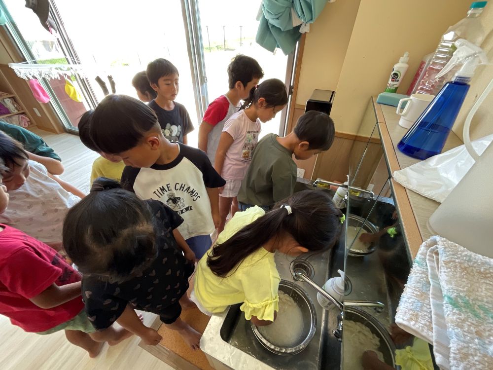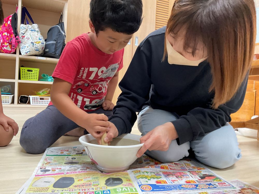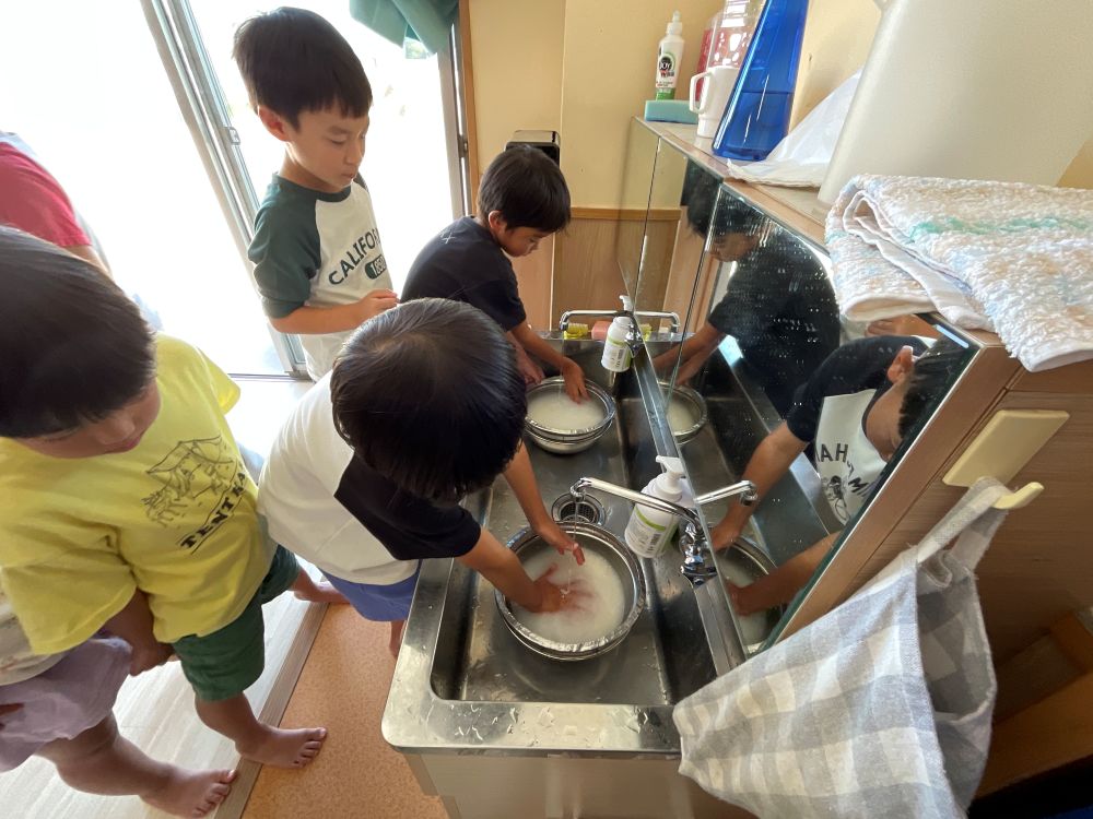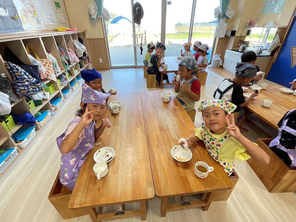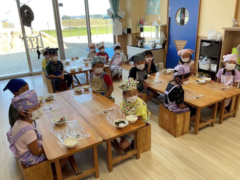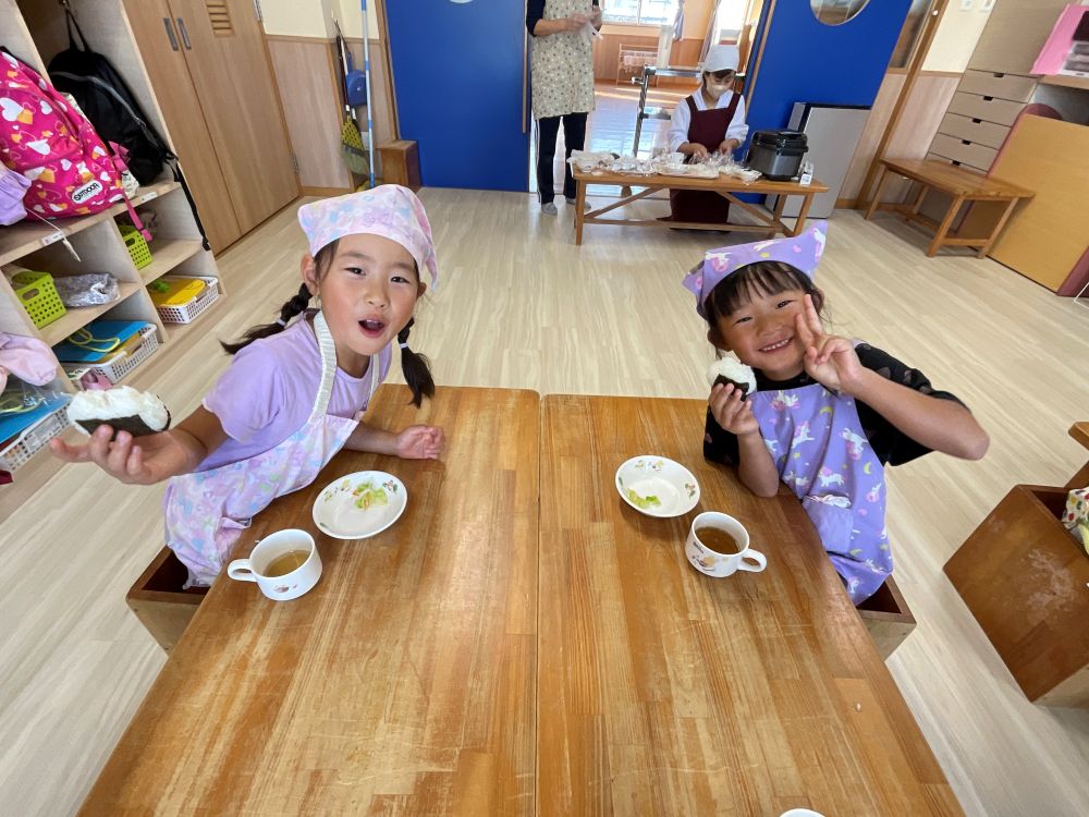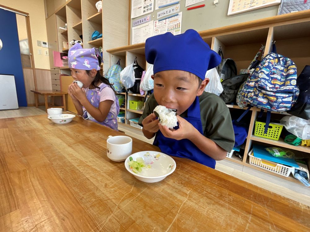「ホカホカのご飯おいし~!」「梅干しすっぱい!」と大きいお口で喜んで食べていた子どもたちでした。