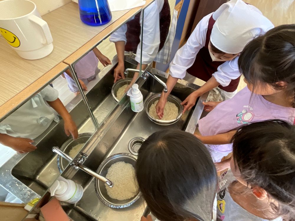 研いだ新米に子どもたちが育てた玄米を加えて………