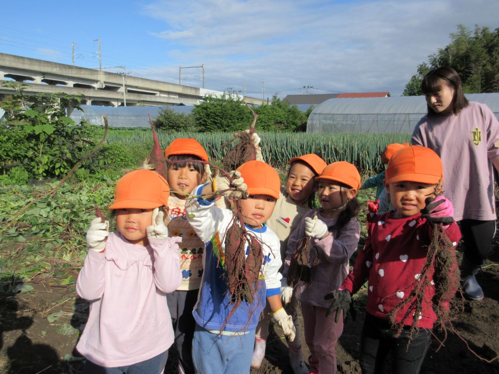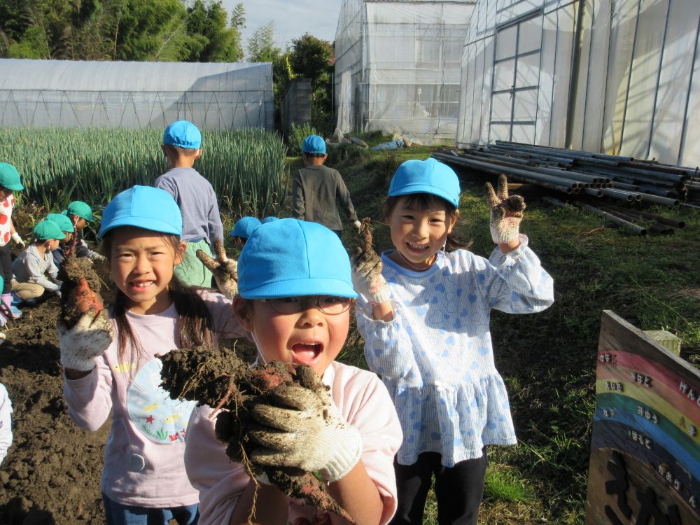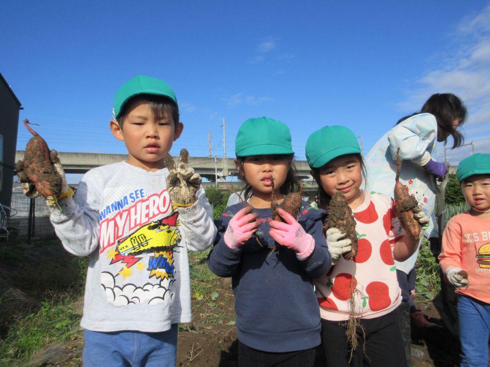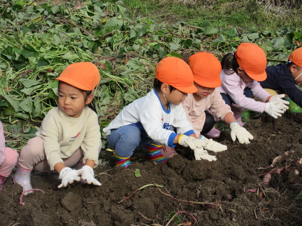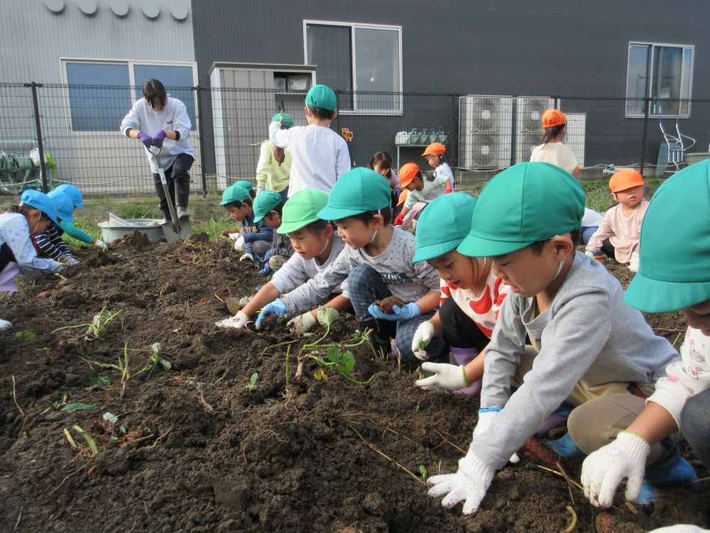 「あったー!」 「大きいの見つけたよ!」 と楽しみながら芋ほりをしていた子どもたちです。