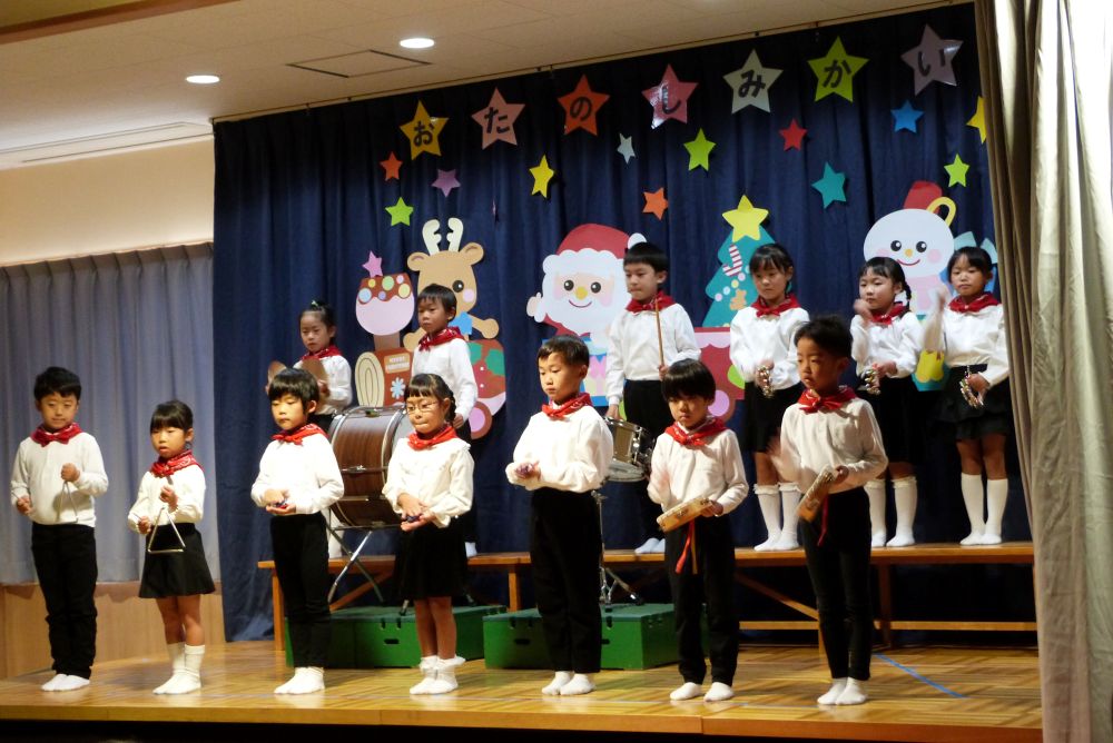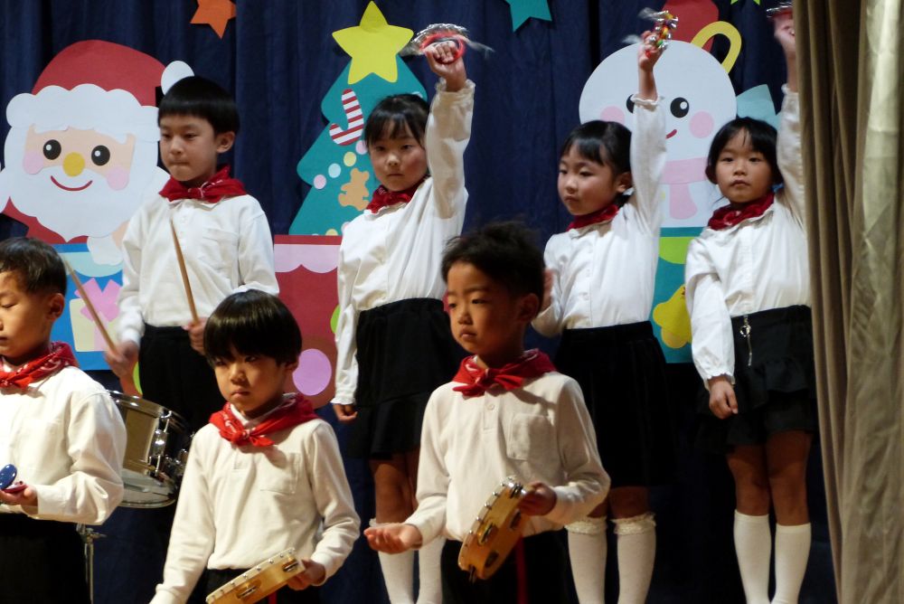 トライアングル・カスタネット・タンバリン・鈴・太鼓・シンバルの楽器をみんなで奏でました。