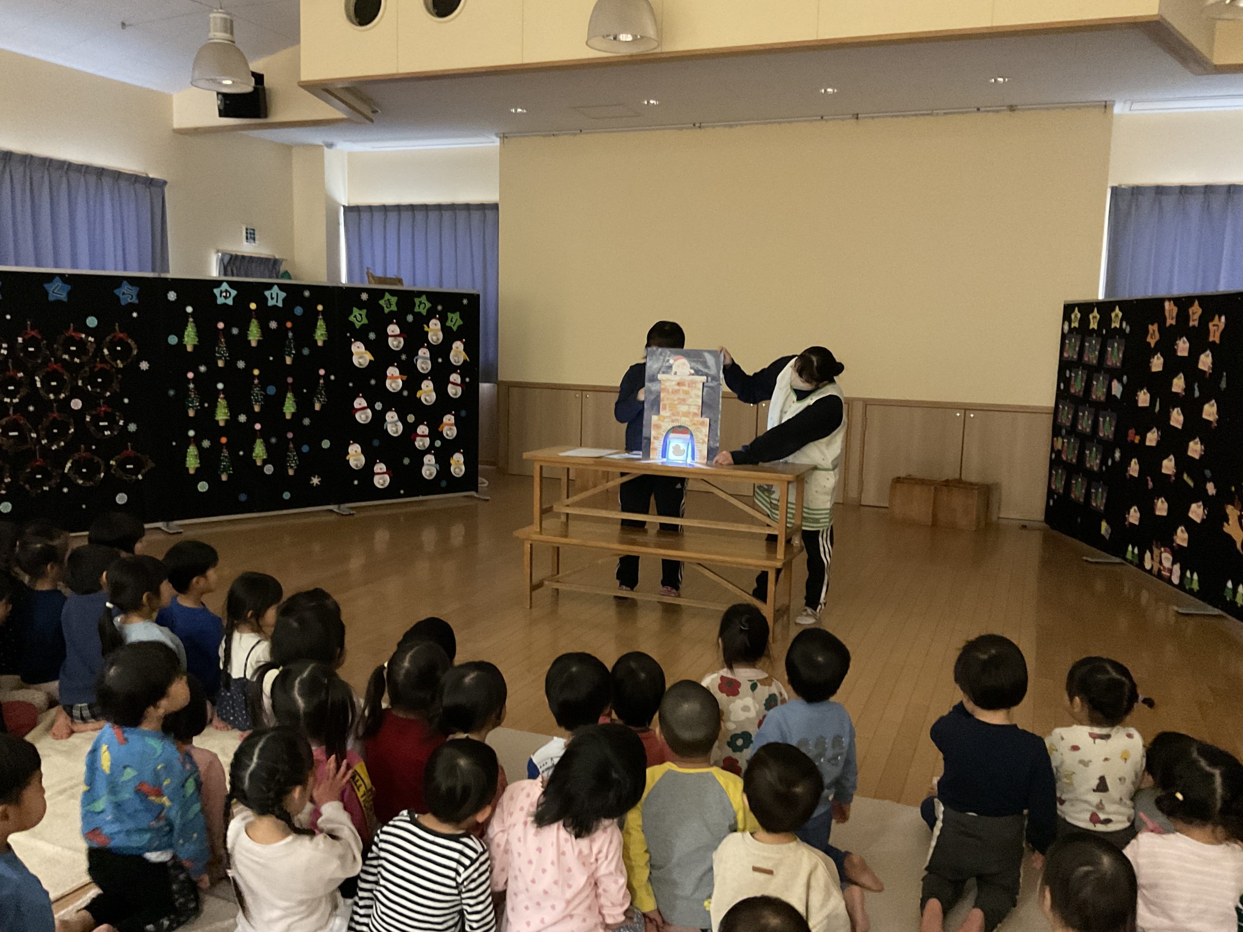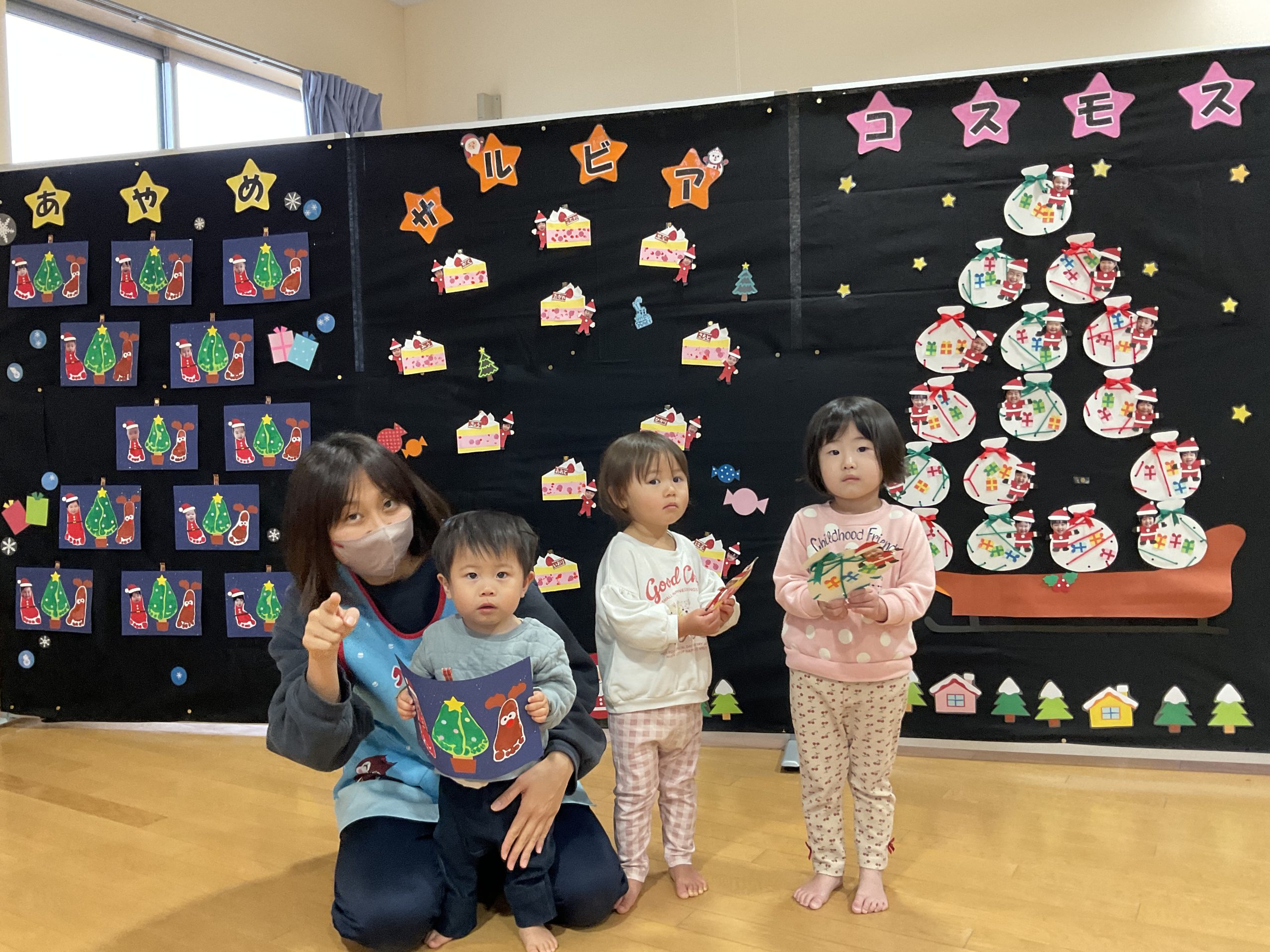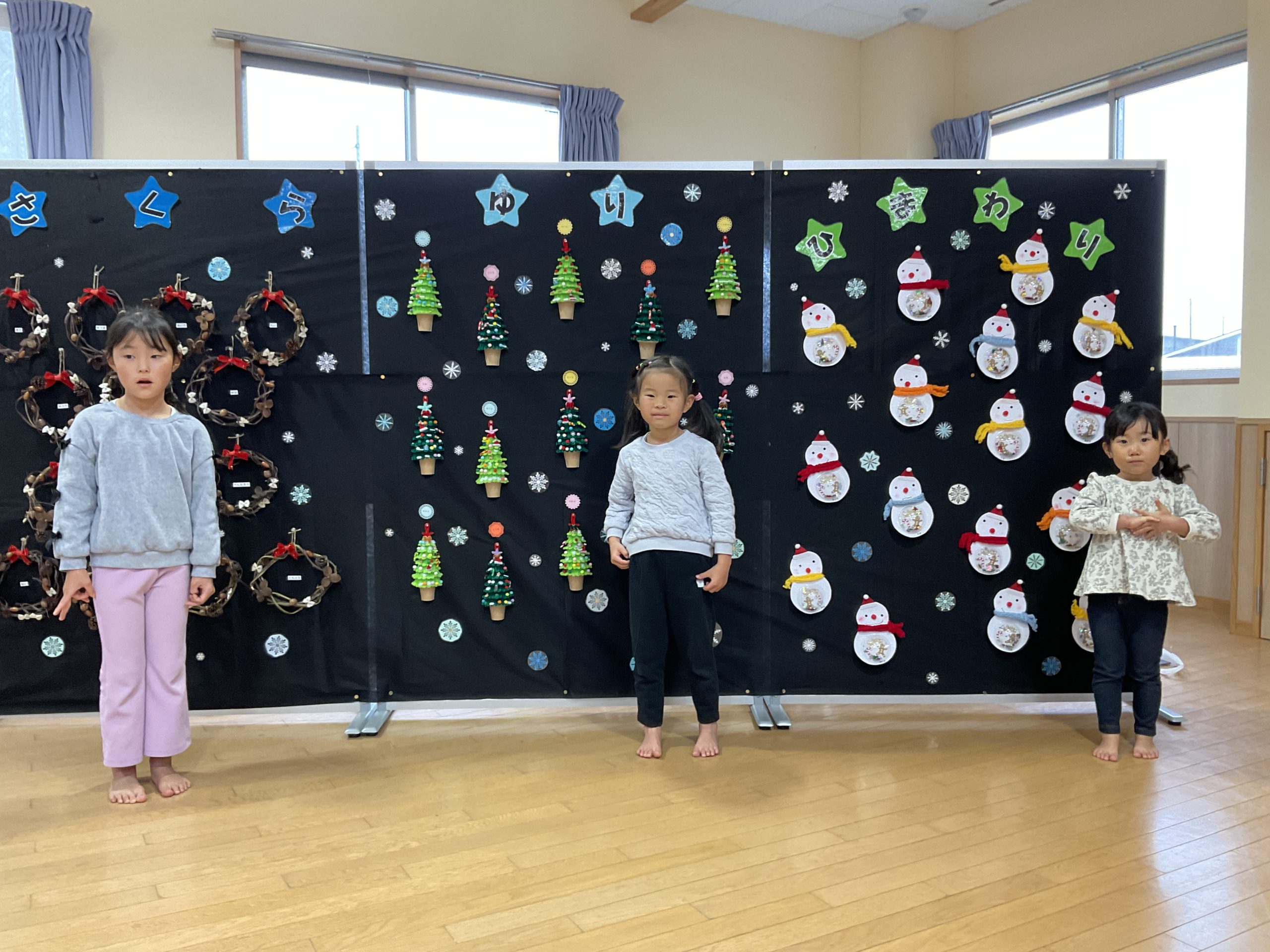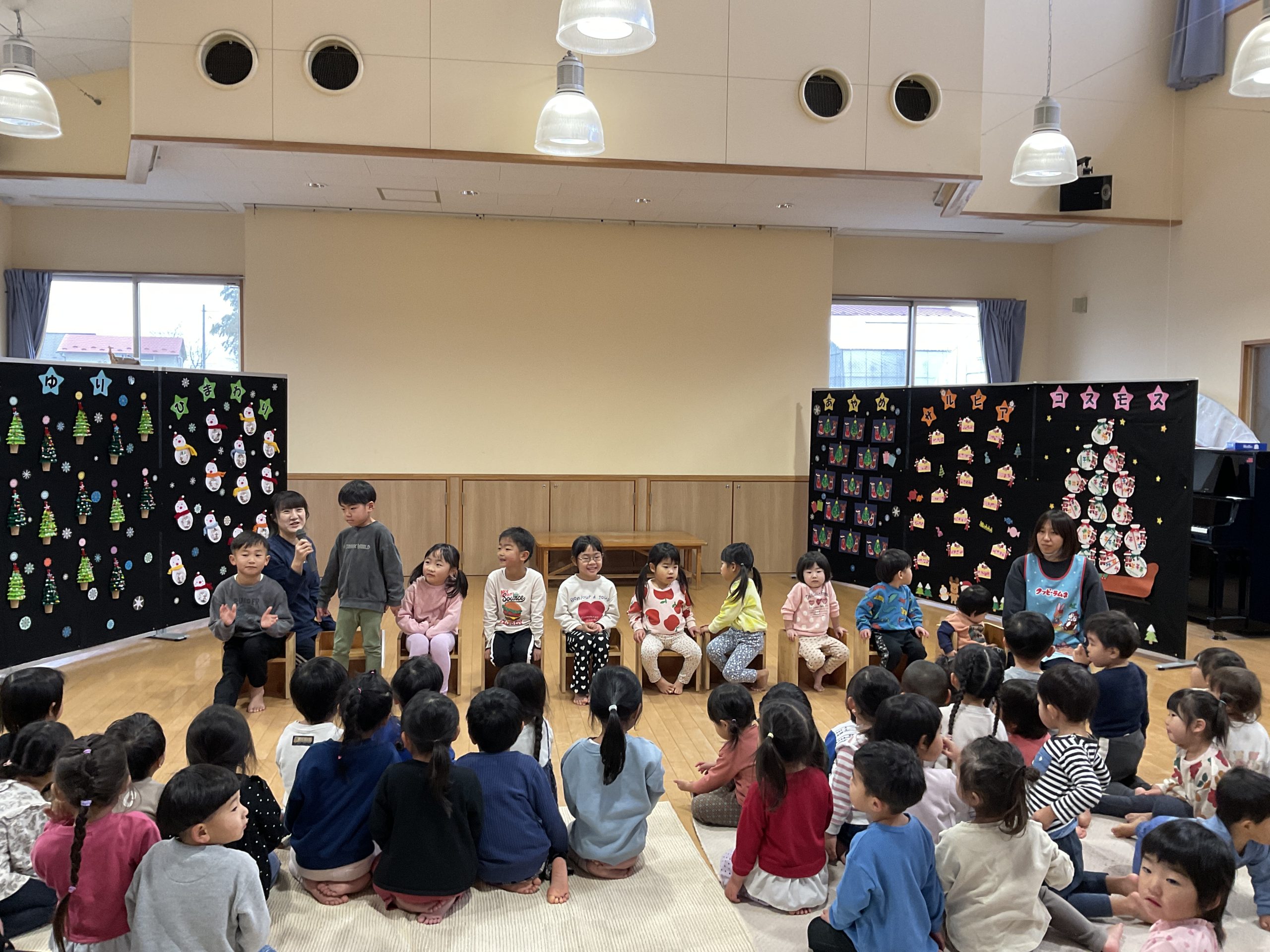 クリスマス製作をみんなの前で発表したり、クリスマスのライトシアターを見て楽しみました☆