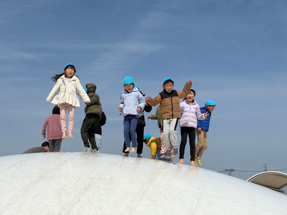いろいろな種類の滑り台やフワフワドームにおおはしゃぎの子どもたち!