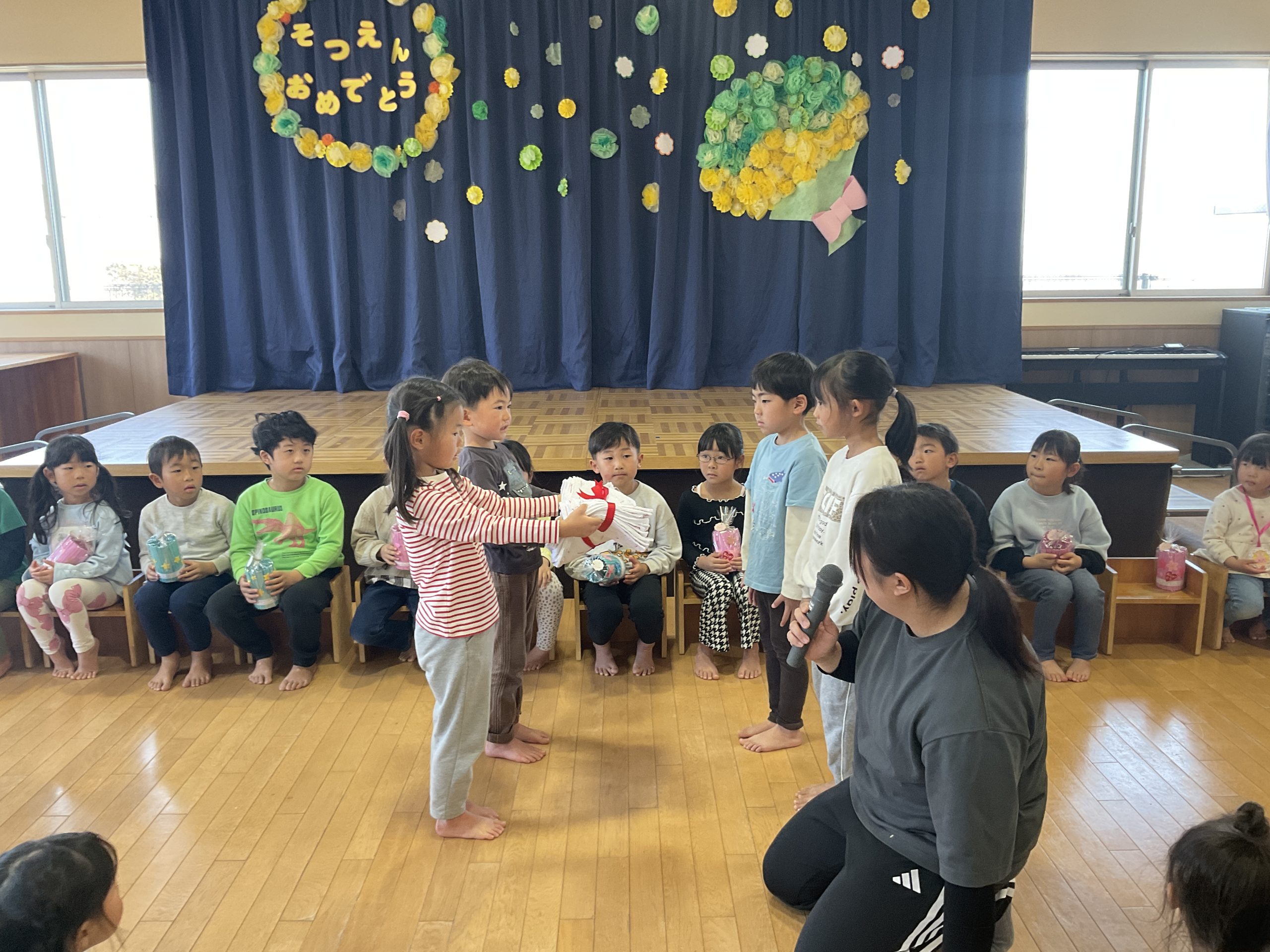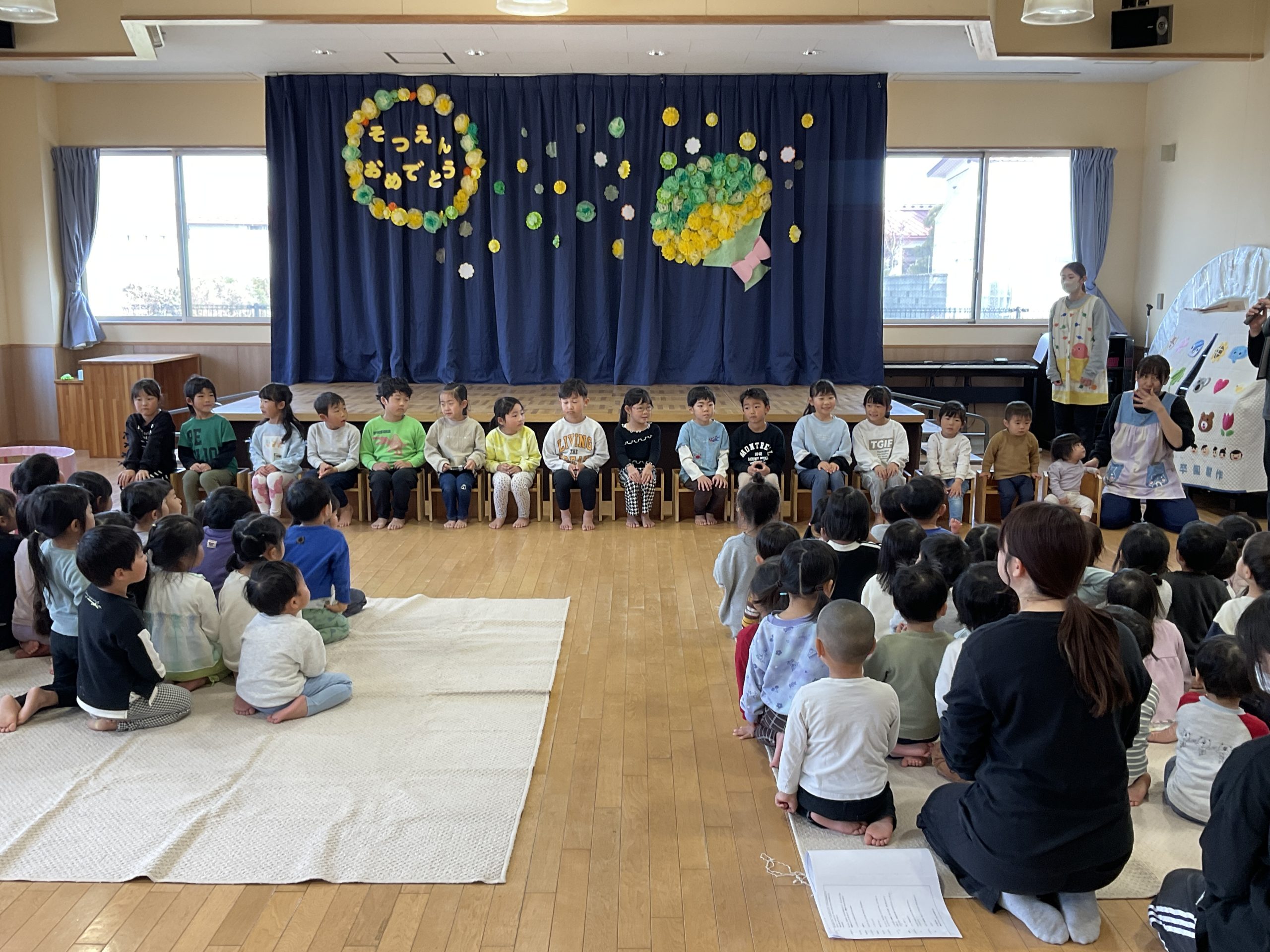 さくらさん14名と転園する3名のおともだちのお別れ会をしました。