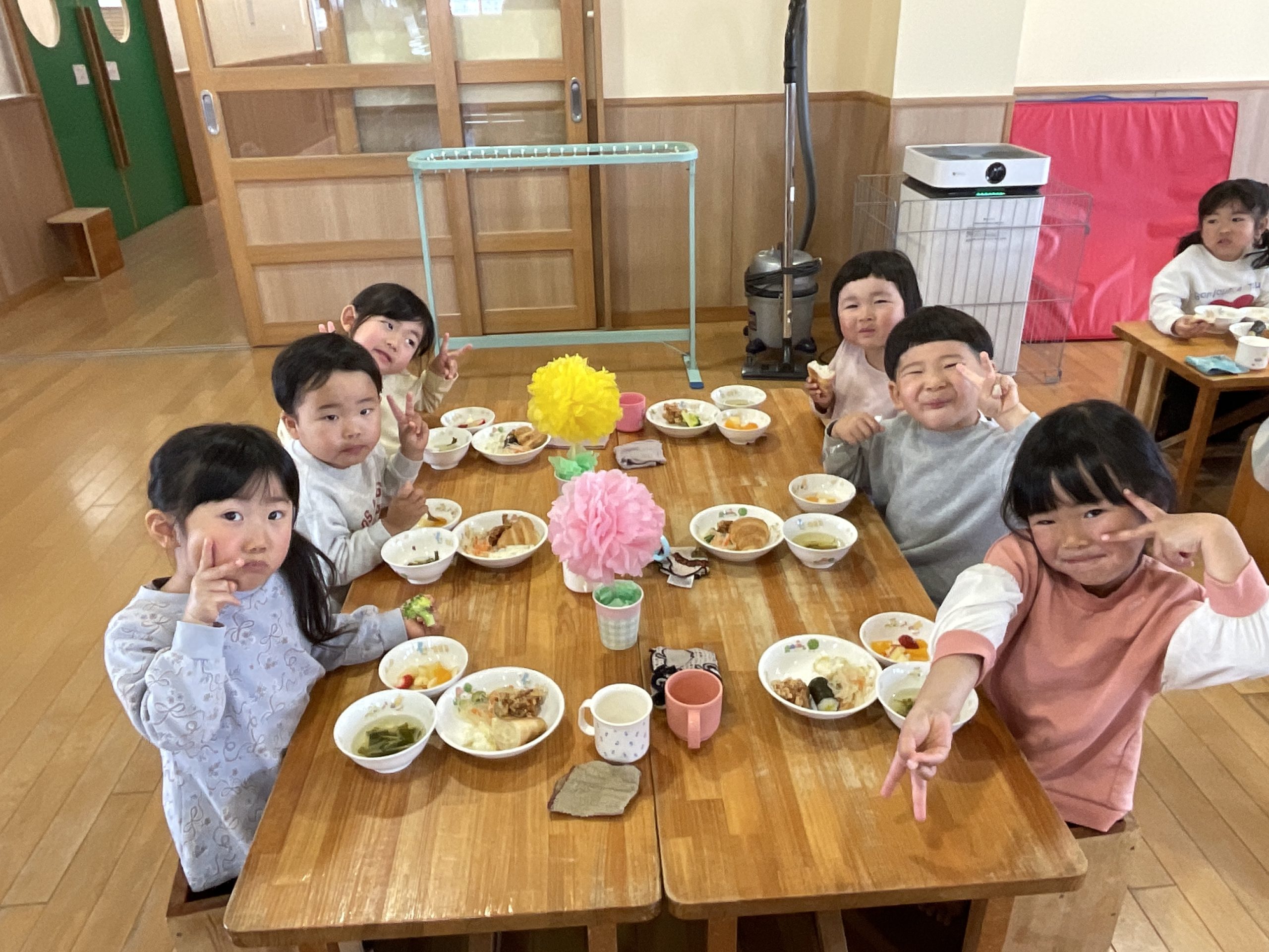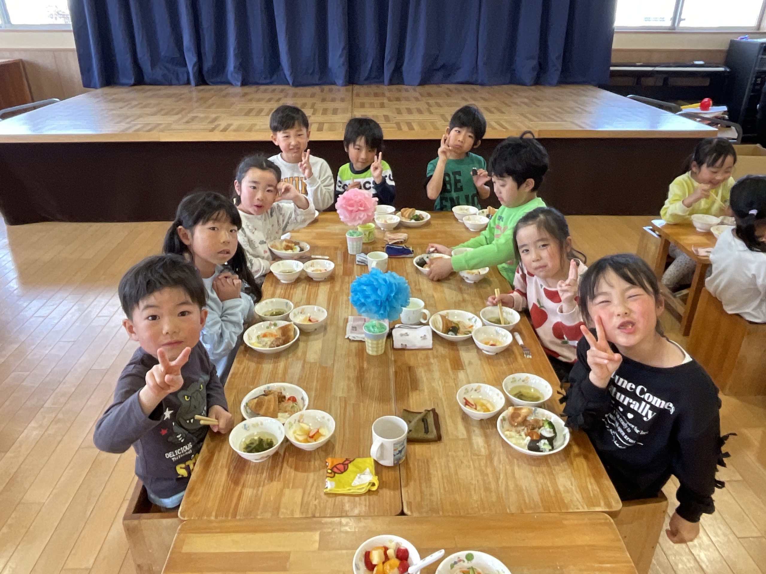 みんなで食べてにこにこ笑顔いっぱいのお別れ会となりました。